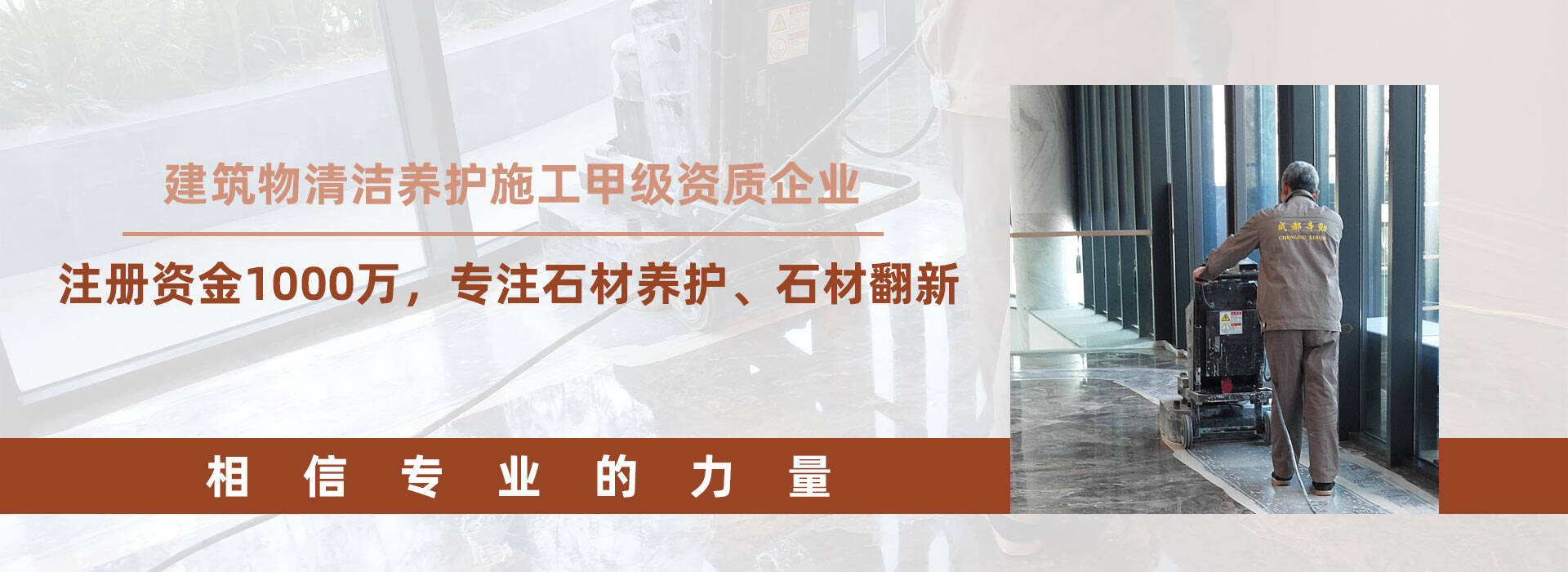 成都辛勤清潔服務有限公司成立于2016年,注冊資本1000萬元,公司具有市政環境清潔維護資質、環衛清潔一級資質、建筑物外立面清洗及石材養護甲級資質等一系列資質證書;是一家集成都石材翻新、成都石材養護、成都保潔、成都外墻清洗、成都開荒保潔、成都地毯清洗、成都地板打蠟、成都瓷磚美縫、工程開荒保潔、成都物業管理、成都市政環境、成都物業托管、成都家政服務等多項服務為一體的專業環保型企業。